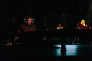 Mais Rebekka Kricheldorf ne contente pas d’utiliser les codes du boulevard pour déverser sa petite ironie sur notre monde. C’est le théâtre en lui-même, en tant qu’événement collectif, dont elle s’empare. Extase et Quotidien est en effet une machine bien huilée – en tout cas dans un premier temps. Une forme « d’extase collective » se produit durant la première partie, le public étant confronté à ce qu’il connaît de la médiocrité des personnages égoïstes et névrosés dans lesquels chacun ne peut que trop se reconnaître (rire de ses propres névroses est d’ailleurs extrêmement jouissif). Peu à peu cependant, et après avoir longtemps déroulé sa mécanique implacable, il me semble que la pièce se met à subir un effet de « patinage », comme si la drôlerie des situations, la brillance et l’irrévérence des dialogues ne produisaient plus l’effet escompté.