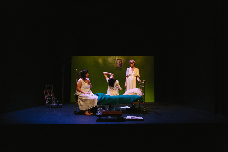 Le regard porté par Rebekka Kricheldorf est beaucoup plus acide. Dans Villa Dolorosa, c’est la possibilité même de produire un discours sur le monde, ou sur sa propre vie, qui semble avoir été abandonnée. Dans la dernière scène, d’une ironie extrême, les trois sœurs se parodient elles-mêmes, citant les dialogues qu’elles ont répétés tout au long de la pièce, comme des leitmotive. Rien ne semble plus avoir de sens. Ce qui devait nous servir à construire une pensée, et donc une relation au monde, cet outil indispensable – le langage – semble lui-même caduque : « À l’occasion de mon anniversaire, j’ai saisi l’opportunité pour réfléchir un peu sur ma vie, ironise une dernière fois Irina, et j’en suis arrivée au résultat suivant ». Et lorsque ses sœurs, pour toute réponse, poussent un gémissement ennuyé, Irina conclut : « Bon ben, alors, non ».