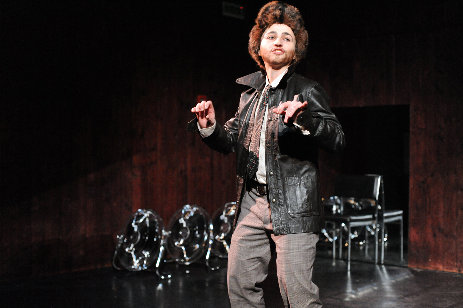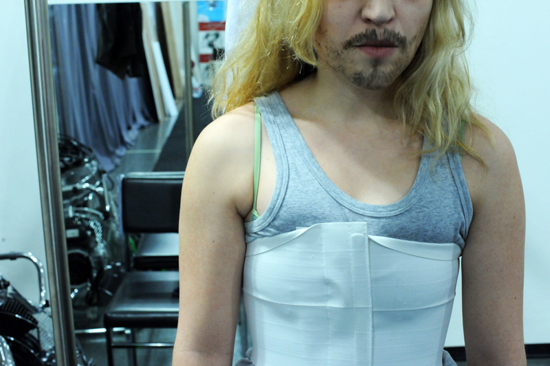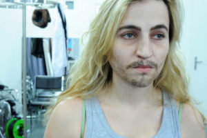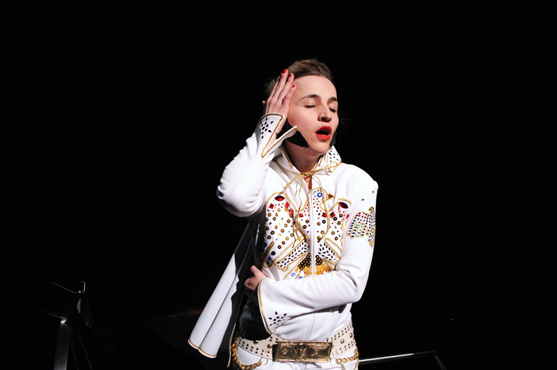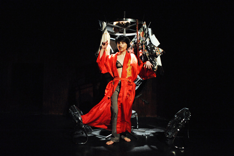 Comment dès lors rendre compte théâtralement de cette « chimère » du MOI soi-disant défini et cohérent ? Il m’a semblé que le travesti pourrait être une bonne piste. Ce qui est « magique » avec le travesti, c’est que l’on y voit à la fois le sexe originel et l’autre sexe, celui qui est joué. Dépositaire de deux identités sexuelles, le travesti a au moins deux visages superposés. Le texte de Grichkovets, de son côté, est constitué d’une succession d’anecdotes, étroitement tissées entre elles. Autant de facettes d’une même personnalité, mais qui au final sont tellement nombreuses qu’inévitablement on se pose la question : et si toutes ces anecdotes, ces tentatives de s’approprier le monde et d’en rendre compte afin de le ressentir et de dire qu’on existe ne constitueraient pas le plus terrible des aveux ? Celui qui consisterait à dire que je ne peux pas me définir sans mentir, sans revêtir une fausse identité, que JE n’est pas MOI ?