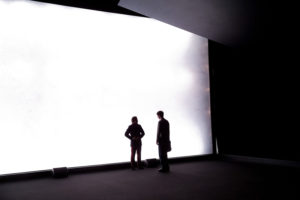 Quoiqu’il en soit, tout passera par l’écoute, une écoute réelle, profonde et intime de l’espace, et du silence. Une écoute partagée avec les spectateurs. Parce que c’est sans doute à travers le silence que l’on peut le mieux se frotter aux limites – ou à leur absence. Dans le vide créé par le silence, l’espace semble s’agrandir, ou devenir aussi petit qu’une tête d’épingle. Dans le vide créé par le silence, les corps s’approchent, s’entrechoquent sans bruit, ou se dissolvent comme des vapeurs.
