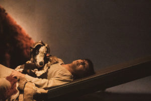 Car je veux m’en sortir. Comme Victor, l’enfant disparu de ces nuits enceintes, je rêve de revenir dans ma forêt primitive, dans ce jardin où je pourrais vivre comme un animal, un chasseur, un cueilleur, ou peut-être même une proie. Comme David, je rêve de quitter la ville asséchée où je vis, je rêve de réinventer l’amour, je rêve de vivre sans argent, sans dépendre de la propriété, sans modèle patriarcal obsédant et obsolète. Comme Sam, je rêve d’un monde où l’on ne serait pas fasciné par la réussite et par l’expansion, je rêve de nouveaux récits séduisants capables de mettre en scène une relation à un monde aux ressources limitées. Comme Mélisande, la force réactionnaire de la pièce, je suis furieusement arrimé à mes origines que j’ai peur de voir disparaître. Comme le jeune Maxime, je suis extrêmement fâché contre les forces immobilistes et réactionnaires au pouvoir, et il m’arrive de retourner cette fâcherie contre moi-même. Comme Lou, j’aimerais croire que la technologie et la science nous sauveront. Comme Petit Moujik, je fais ma petite cuisine, je rêve aussi de m’en sortir par la petite porte, je rêve de tisser une nouvelle union intime et secrète à la Terre.